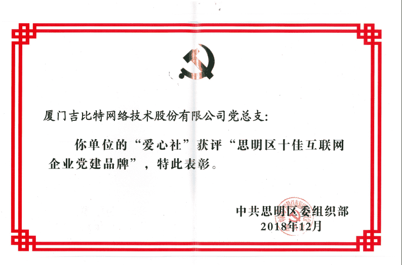 经初审评选、、、网络评选和专家评审等环节,,,"厦门LEWIN乐玩网络技术股份有限公司党总支-爱心社" 从全区28个参评党建品牌中脱颖而出,,,获评"思明区十佳互联网企业党建品牌"。。。