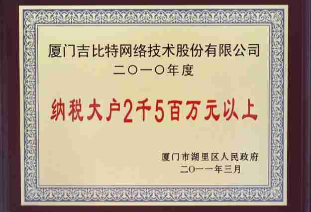 日前,,,,公司被厦门市湖里区人民政府授予了“2010年纳税大户”的荣誉称号,,,充分体现了公司一贯合法纳税、、诚信经营的良好企业社会公民行为。。。。